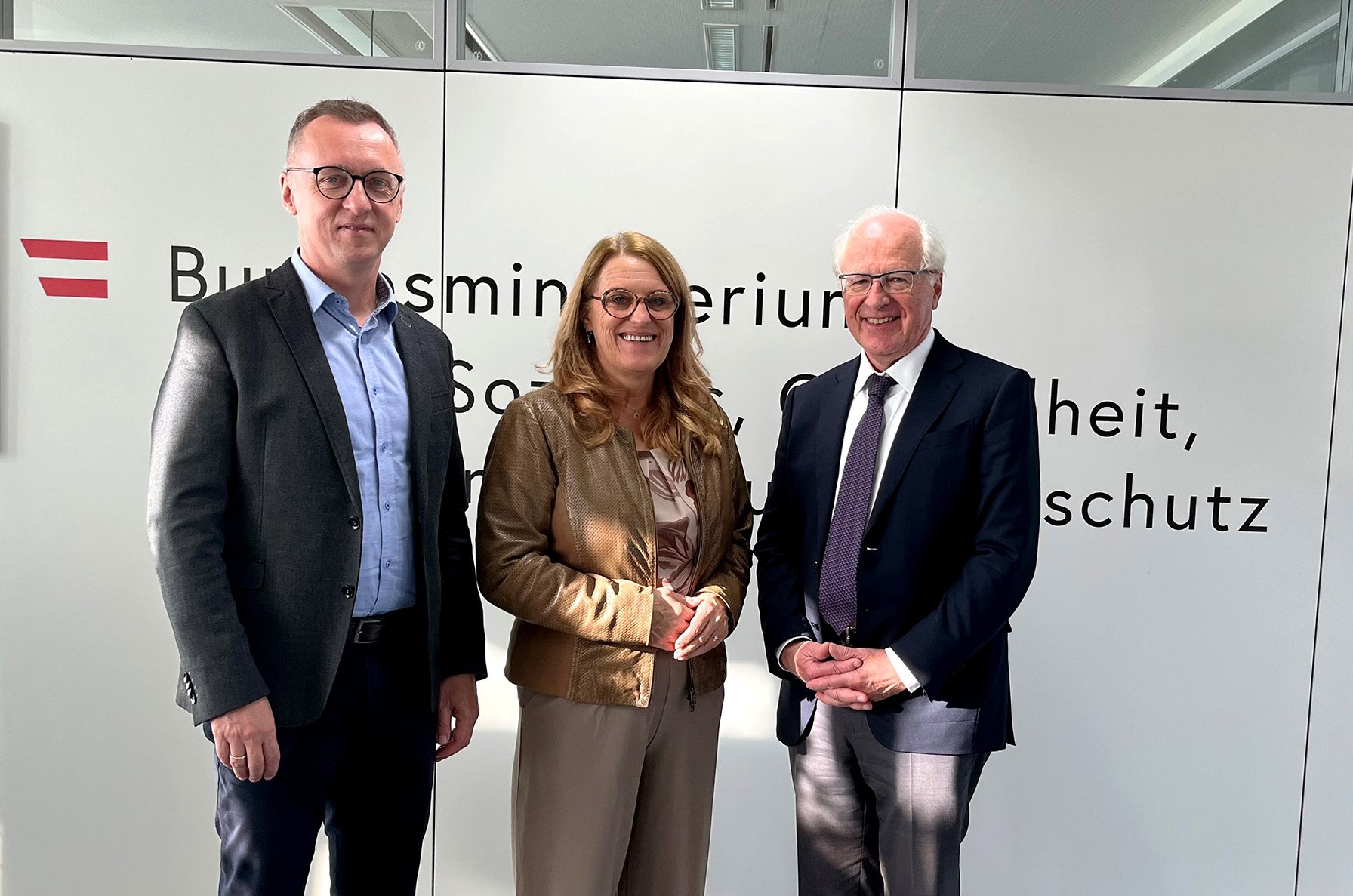 Peter Bohynik, Leiter der Arbeitsgemeinschaft der Ordensspitäler, sowie Rechts- und Gesundheitsexperte Christian Kuhn trafen Staatssekretärin Ulrike Königsberger-Ludwig.