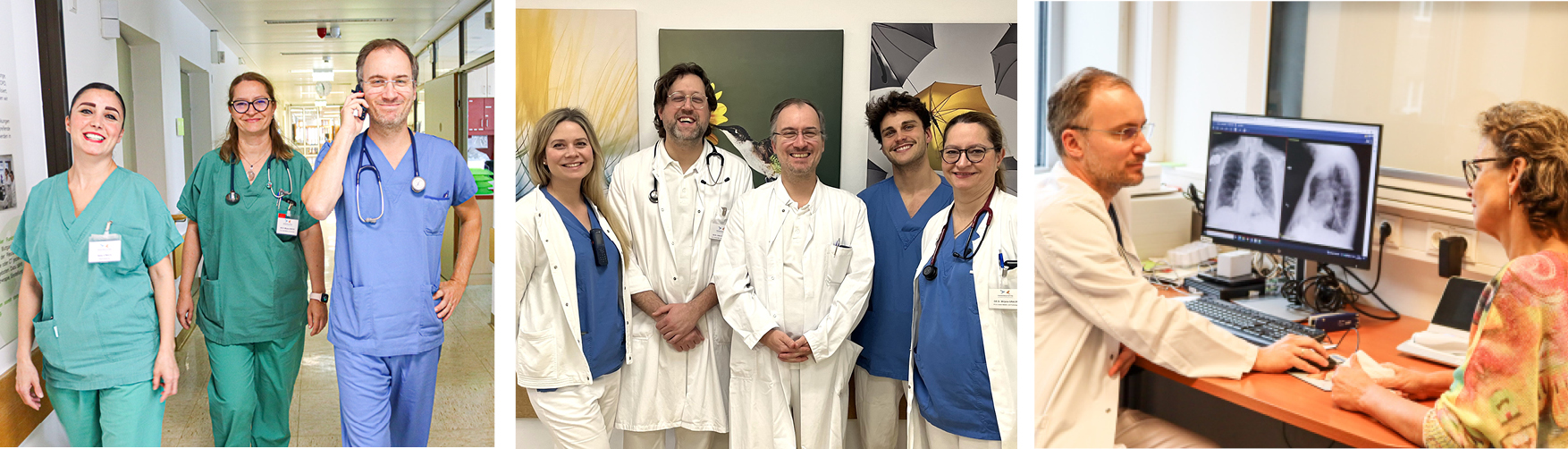 Ein Team von Lungenfachärzt*innen betreut stationäre Patient*innen mit Erkrankungen der Lunge, der Atemwege und des Herz-Kreislaufsystems, insbesondere chronische Bronchitis / COPD, Asthma, Tumorerkrankungen, Pneumonien und Lungenhochdruck.